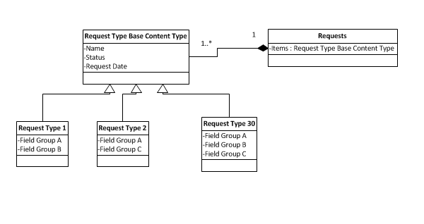 Then I create a list “Request Data” that will contain items of all the content types associated with a particular request.