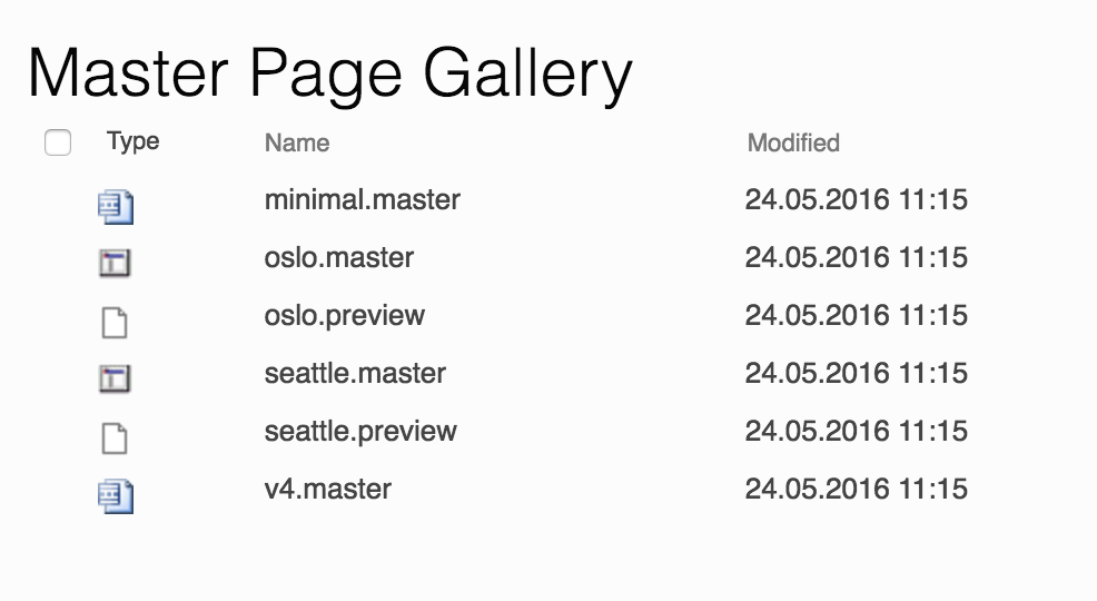 - Withing site settings, there is nothing called “Master pages and page layouts”. The closest thing is “Master pages”, but it doesn’t really contain anything close to what you are describing. Have a look at this photo:Â