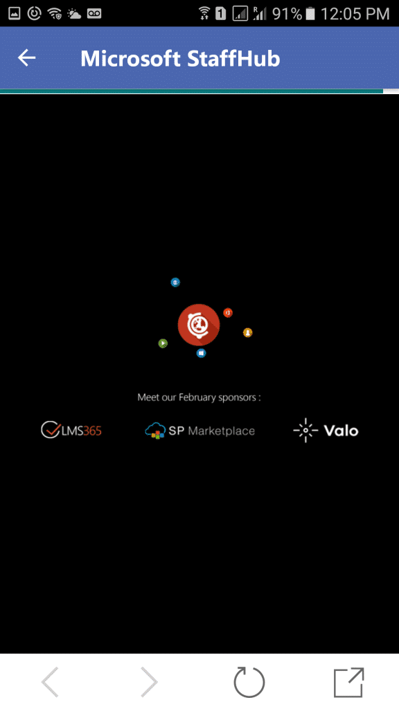 This is an example of how the PowerApps App looks like inside of StaffHub.