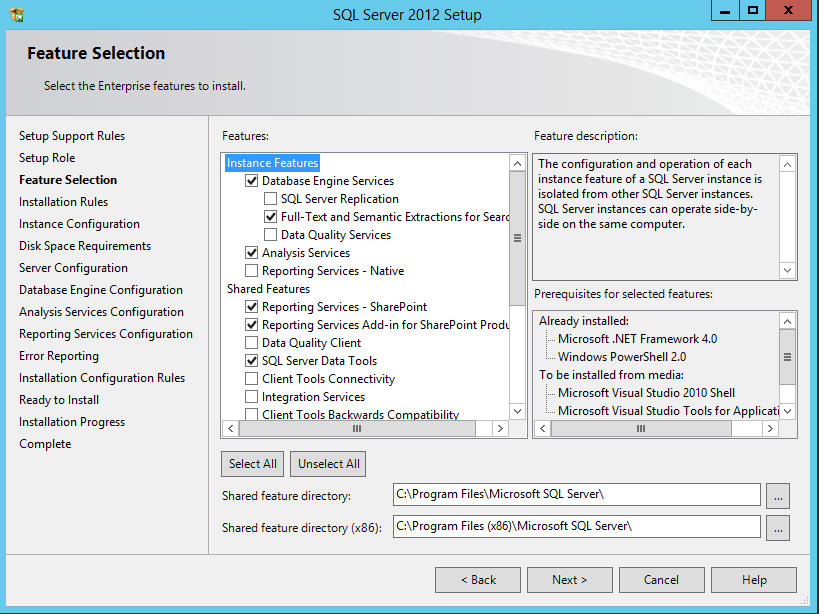 - Analysis Services 2.Shared Features