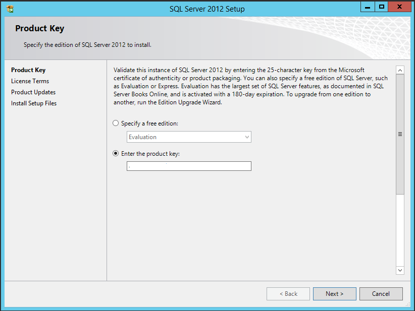 7. In the following Product Key screen, you have to provide a valid license Key. If you are installing the free version, you need to select the Specify a free edition radio box on the screen. Otherwise enter your license key and click Next to continue